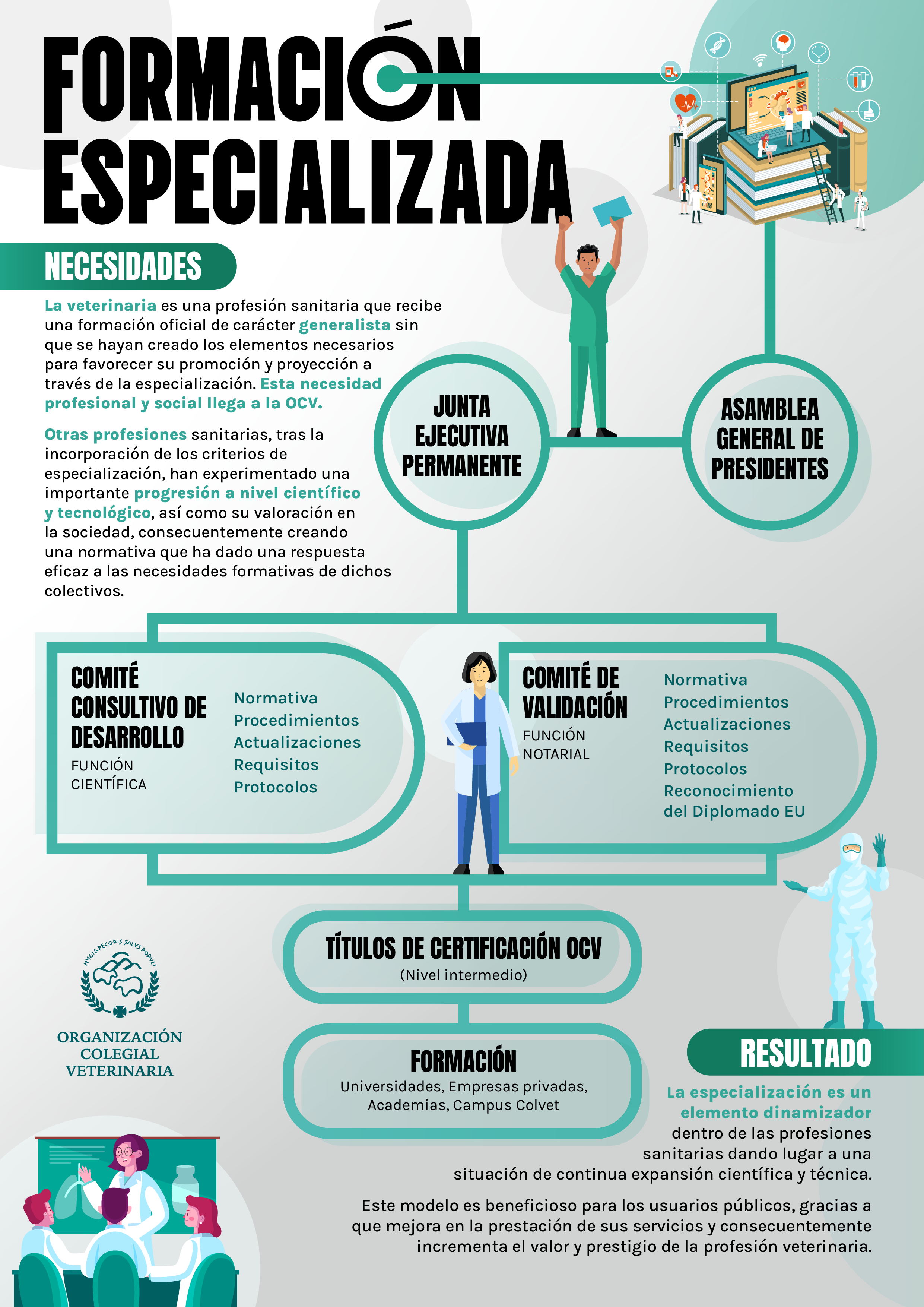 La Organización Colegial Veterinaria (OCV), en colaboración con las Universidades españolas, pone en marcha el nuevo sistema de Especialización Veterinaria, una formación acreditada por VetCEE y reconocida dentro del Marco Europeo de Cualificaciones (EQF/MEC, nivel 7).